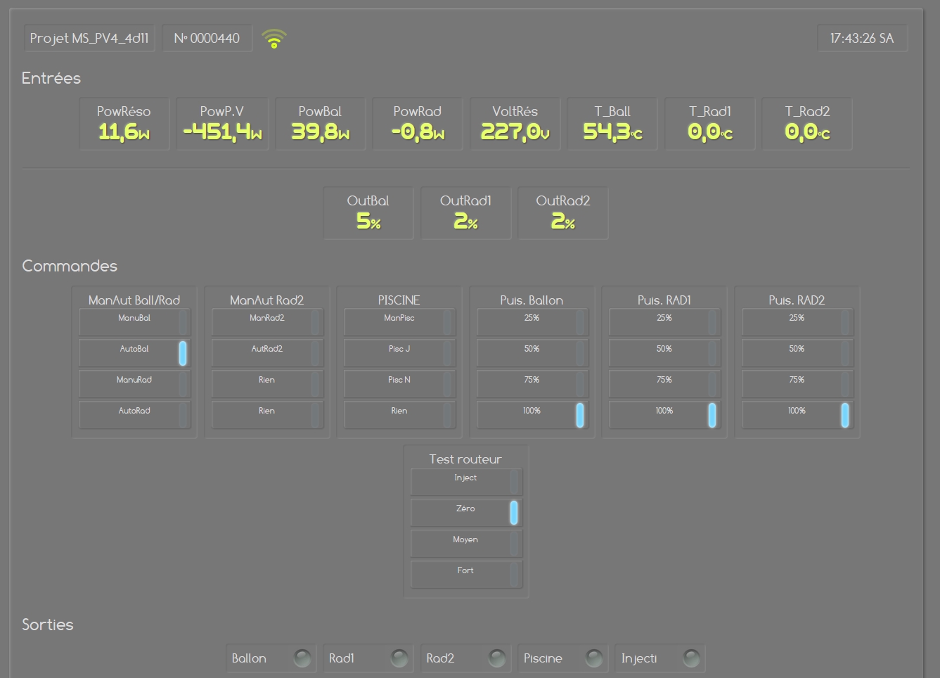 Je souhaite aussi pouvoir couper le routage de mon ballon, car cette hiver je vais le faire tourner en heure creuse 2h pour avoir l'eau chaude le matin. Avec le peu de prod en autonome/hiver mon routeur va consommer tout le surplus pour chauffer un peu le ballon mais j'ai pas besoin qu'il soit chaud en fin de journée donc je préfère que le sur plus soit envoyé vers un radiateur dans la maison ou la c'est utile.