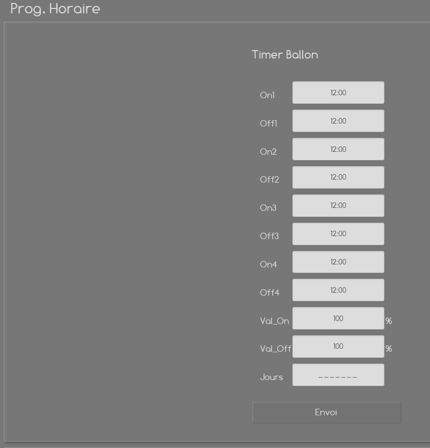 Je n'ai pas de programmation horaire (enfin plus car je n'ai pas réussi à la faire fonctionner non plus...).