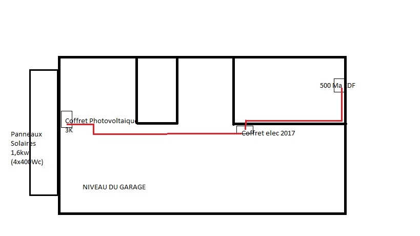 coffret 1 rangée rajouté relié au 500Ma edf pour pose porte garage en 2017 sur lequel est branché le coffret photovoltaïque.